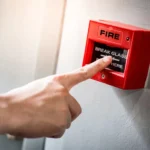 Manual call points are red emergency buttons installed on walls. If someone sees a fire, they can break the glass and press the button to trigger the alarm manually.