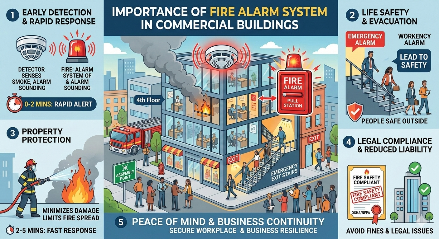 The most fundamental purpose of any fire alarm system is protecting the lives of people inside the building. In commercial settings offices, factories, hospitals, shopping centers the number of occupants can be massive. Early detection and rapid alerting gives people the time they need to evacuate safely before smoke and flames become lethal.